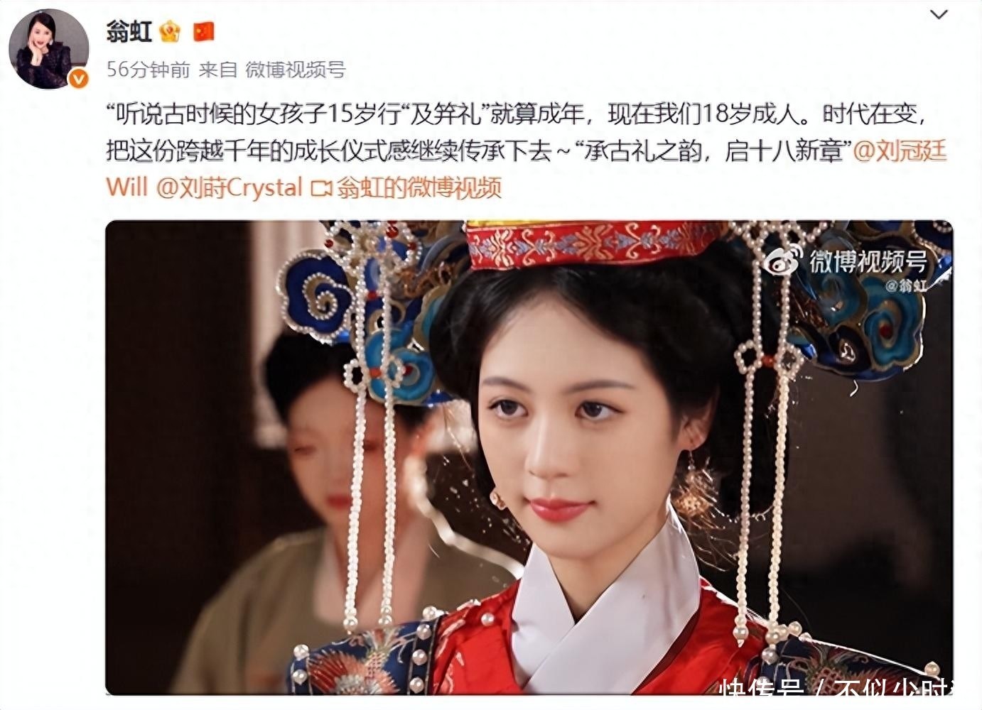 94. 红星新闻:《翁虹为18岁女儿办中式成人礼,泪洒现场!女儿曾被夸“最美星二代”》2025-10-09