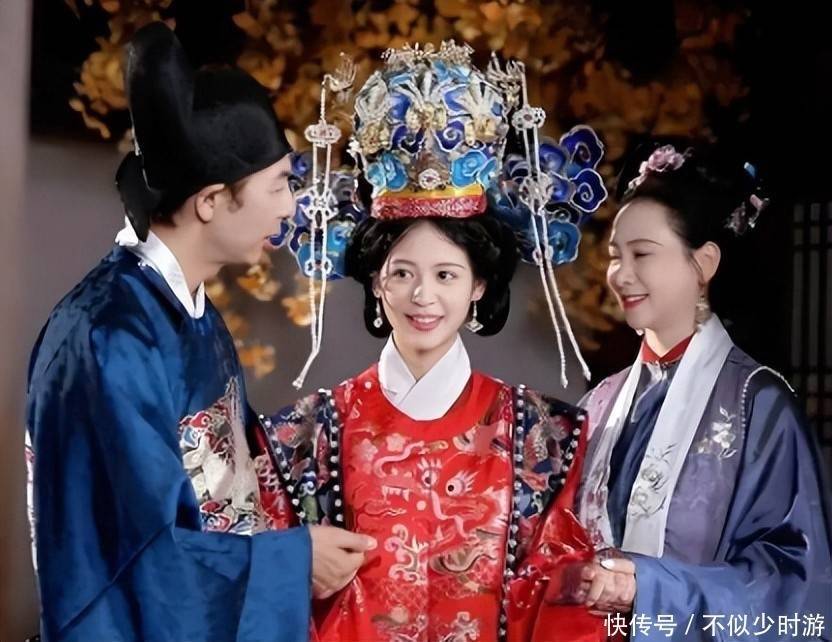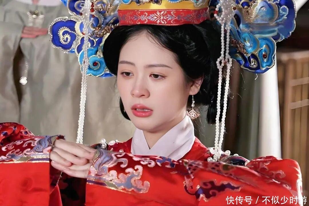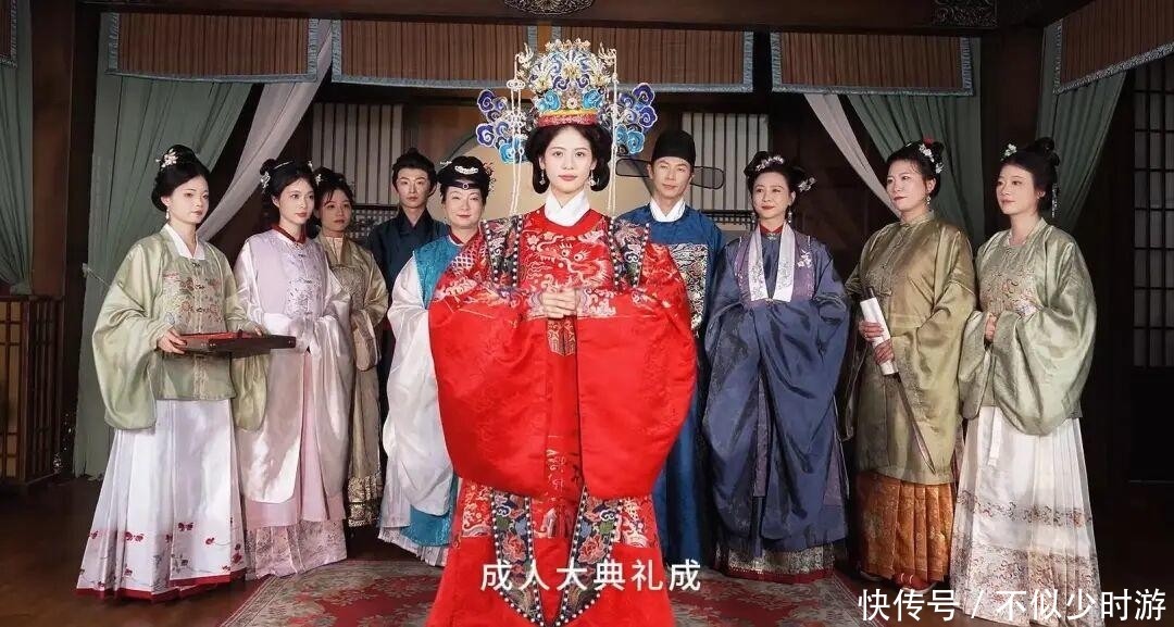 77. 仪式当日,小水晶换上华美的红色明代服饰,发髻高挽,头饰精美,宛若画卷中走出的名门闺秀。