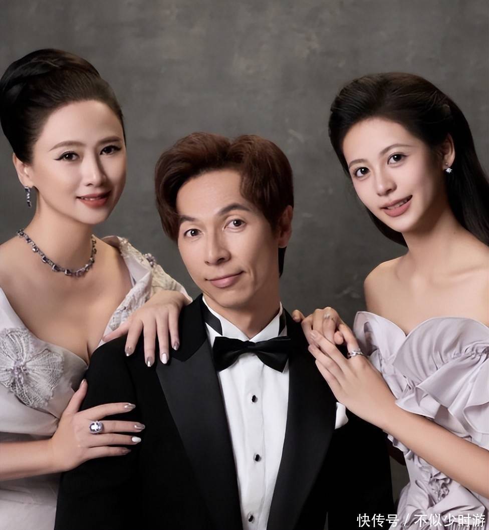 73. 小水晶身着浅色旗袍,翁虹身穿深色款式,刘冠廷搭配传统长衫,画面温馨和谐,令人称羡。